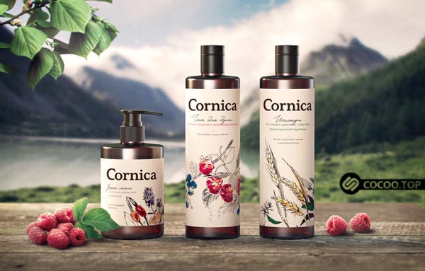 所谓粗细对比,是指在构图的过程中所使用的色彩以及由色彩组成图案而形成的一种风格而言,在书画作品中我们知道有工笔和写意之说,或工笔与写意同出现在一个画面上(如同国画大师齐白石的白菜与蝈蝈的画一般),这种风格在包装构图中是一些包装时常利用的表现手法。对于这种粗细对比有些是主体图案与陪衬图案对比;有些是中心图案与背景图案的对比;有的是一连粗犷如风扫残云,而另一边则精美的细若游丝;有些以狂草的书法取代图案,这在一些酒类和食品类包装中都能随时随地见到。如思念牌水饺和飘柔牌的洗发露就是这样的。