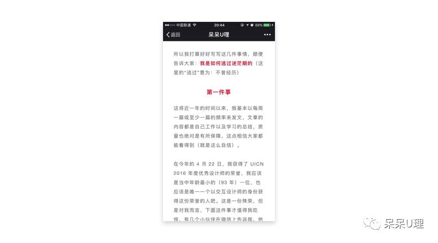 比如我公众号的文章,我会在两边留一个间距,让读者更好的集中视觉焦点,不会逃离手机屏幕的边缘。我大概去年中旬开始这样做之后就一直被模仿,也正说明了它确实是有效果的。