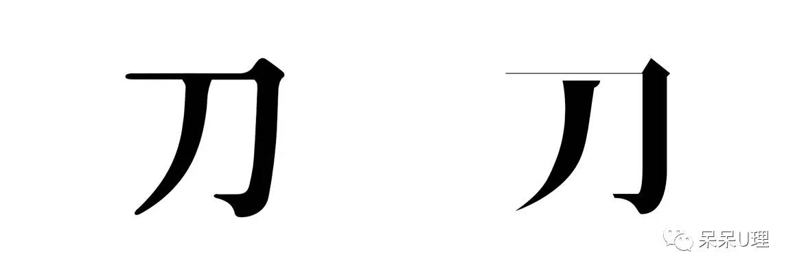 在做了多次更改之后,还是觉得差点感觉,正好翻看到左佐18luck新利全站 的“百年映像”,觉得这个横笔的细体可以沿用,所以也试了一下。这里的「刀」字都是初设,细节都没有调整。