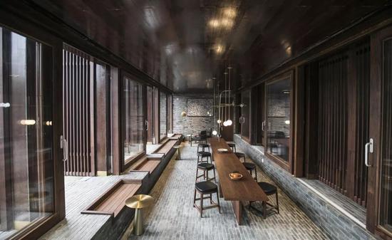 灵感源自中国四合院的建筑类型,想要唤醒来客对胡同与砖房的记忆。建筑由原有的废弃仓库改建而成,包含了新建的混凝土结构,其中有一间餐厅,一个剧院和一个展览空间。