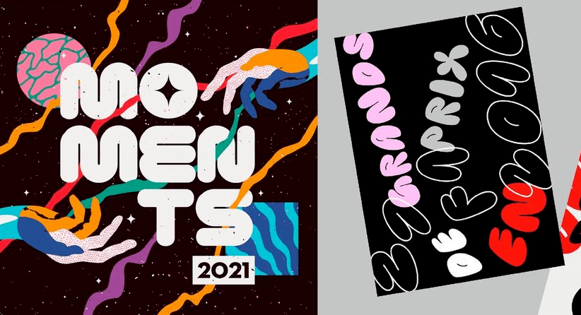 圆角的字体可以让人感觉充满了活力,并且与多种明亮的颜色进行搭配,能增添活力,吸引力,同时也具有怪诞趣味性,让画面更加活泼。