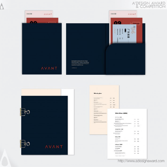 The owners of the Avant are two young Chinese chefs who had the global experience of studying and living in different countries. The restaurant combines techniques from various regions of the world with local ingredients and traditional Chinese cuisine. From the moment they step into Avant to their departure, customers are immersed in a delightful journey through the modern and elegant branding identity modeled after the owners' journeys.