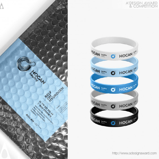 Hocan healthy mainly develops intelligent technology products around 'hydrogen drinking water, hydrogen breathing and hydrogen health care'. In the design of the logo, we summarized the 'hydrogen molecule' into a more focused circle, showing the change process between water and hydrogen in the form of positive and negative shapes, and skillfully expressing the industrial features of the brand. Boldly use technology blue as the main color, and cooperate with three-dimensional modeling to make it significantly different from similar brands and increase consumer attention.