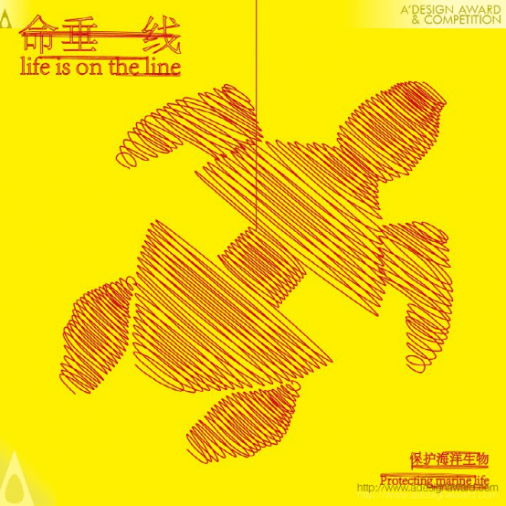 这套海报的主题是保护海洋生物。作者用一根细细的红色绳子勾勒出海洋生物的形态:海龟、水母和鲸鱼。这表明这些生物受到垃圾环境的束缚,反映了海洋生物的危急状况。整张海报还结合了高水平的绘画技巧和高科技软件,通过各种媒体向公众传达保护海洋生物的理念。