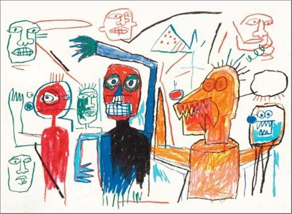 在巴斯奎特的所有注释中,最牛的,就是他的涂鸦。现在回过头去看,巴斯奎特的画画很像是天赐的能力。
