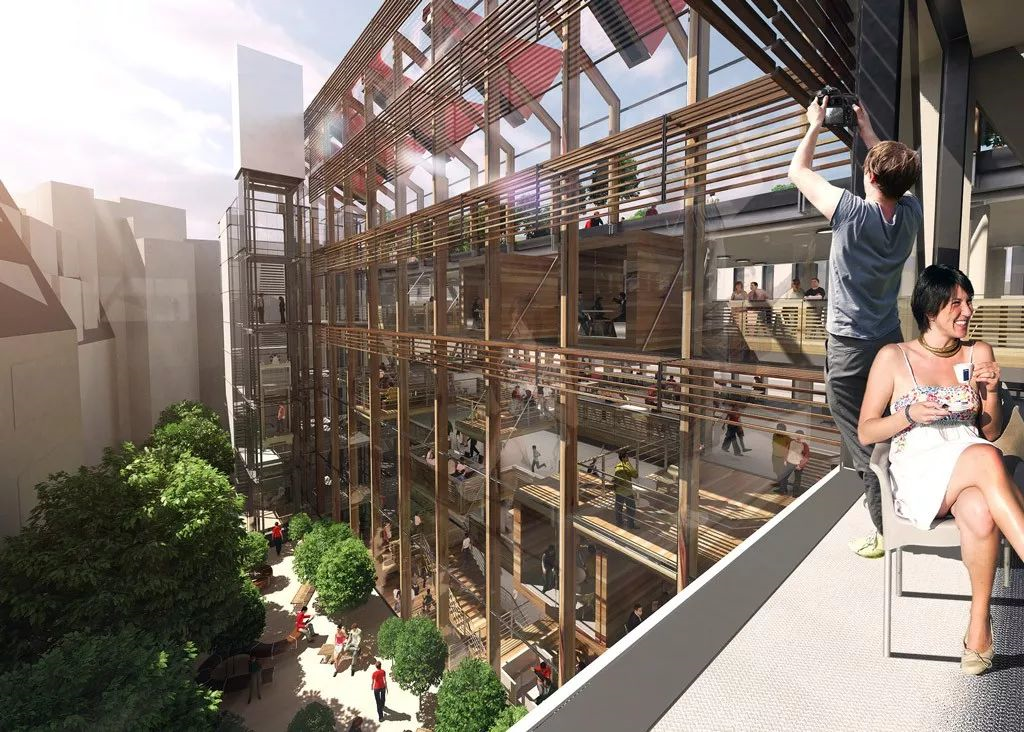 广场的概念是罗杰斯的一个主要关注点。他明白城市是由人组成的,而不是建筑,建筑之间的生命才是最重要的。因此,他认为城市是人们表演的舞台,而建筑是构成表演的布景。