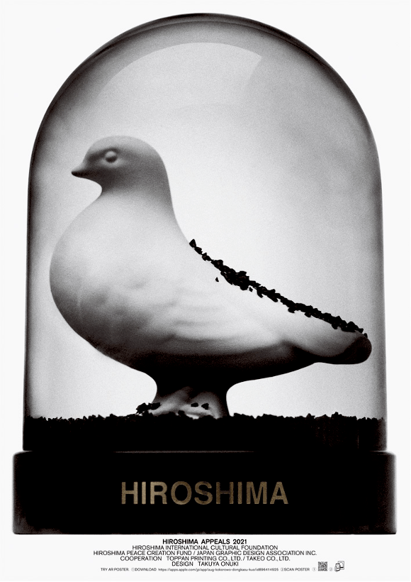 这张呼吁和平的海报,可以从AR观看一只白鸽出现在黑雪中的视频。——黑色雪球的恐惧与白色鸽子的美丽之间的对比鲜明,传达着强烈信息。