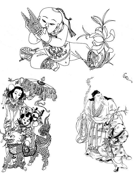 东方传统吉祥纹样通常以民间谚语、神话传说为题材创作,运用人物、花鸟、文字、走兽、风雨雷电、日月星辰等自然元素,是一种以象征、谐音寓意、吉祥文字等手法创造图形,并与吉祥寓意结合的艺术形式。