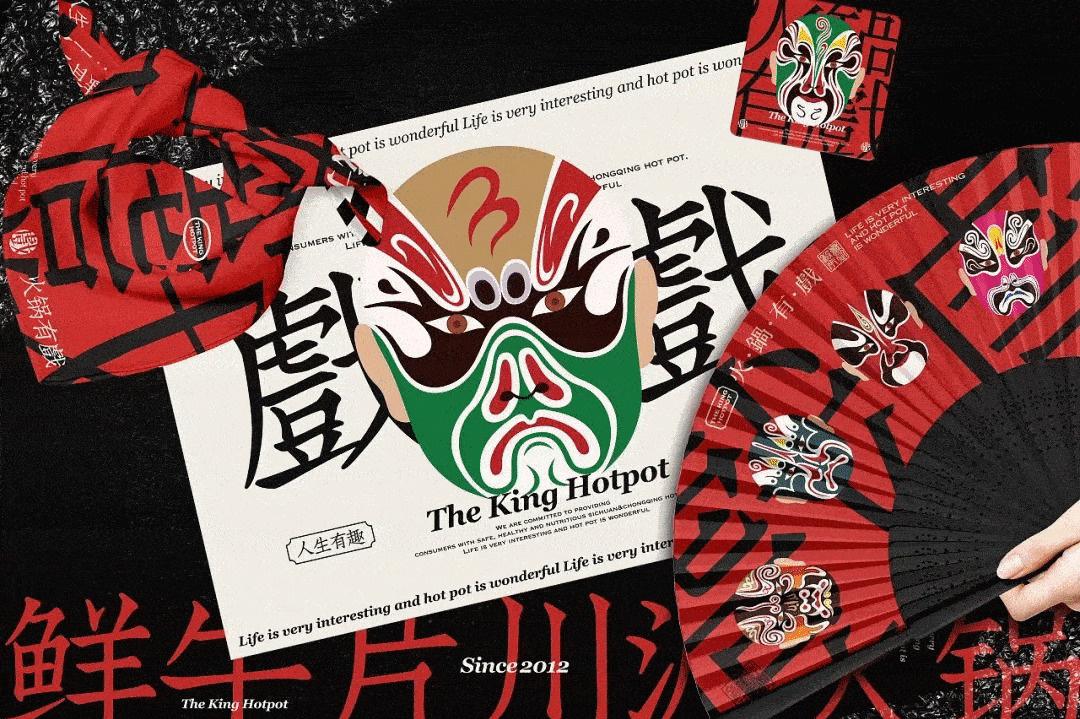 “小龘(dá)坎”川派火锅在品牌logo的18luck新利全站 上采用中英结合的方式,将品牌名称放大居中,采用独特的字体形式,吸引顾客的注意力。在IP形象的18luck新利全站 上,川剧作为川派民俗文化的代表,将川剧的变脸作为唯一品牌认知,更好地输出文化地域内容。整体色彩的使用上,采用传统的川剧红绿配色,贴合脸谱这一视觉核心。