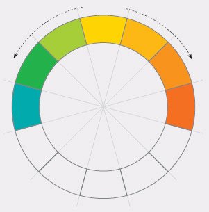 你可能会发现,每一种颜色都拥有部分相邻的颜色,如此循环成一个色环。共同的颜色是颜色关系的基本要点,必须对此有深入的了解。
