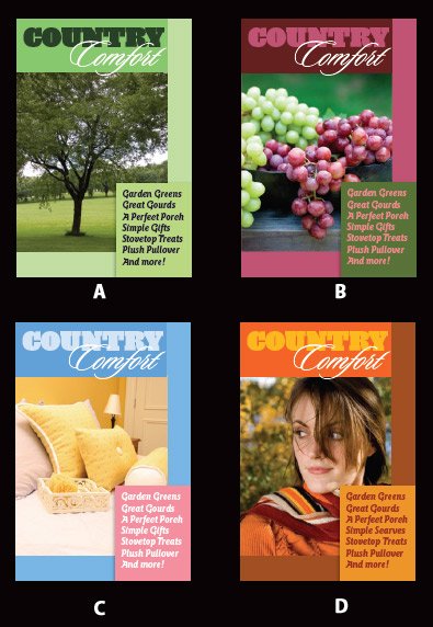 下面这四个封面中,都各自运用了我们在上面所述的其中一种颜色搭配。你能说出它们是运用了哪一种颜色搭配吗?(提示:眼睛只集中在一些大区域的颜色,不要理会细微的颜色区域。也不用理会黑白两种颜色)