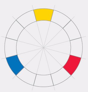 原色是色轮中所有颜色的“父母”。在色轮中,只有这三种颜色不是 由其它颜色调合而成。上图可以看出,三原色在色环中的位置是平均分布的。