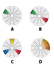 A:单色搭配;B:补色搭配;C:三原色搭配;D:类比色搭配