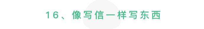 如果你曾经纠结如何说出口一些事情,或是用你创作的东西和某人谈话,那就把它想象成写给别人的一封信。在你脑中想象一个人:他们长什么样?他们多大年龄?他们想听到什么?就好像你正在和他们聊天一样写东西,并且只写给他们,然后静静地看着脑中的声音为你自然地讲述。