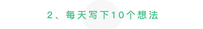 这是我最喜欢的(也是最标准的)训练“创意肌肉”的方法之一。每天写下10个认为实现它会很有趣的想法。不用担心它们会占用多长时间来写,或是要花费多少预算,甚至都不用管它们是否实际——你只需要让你的大脑自由地四处漫步。