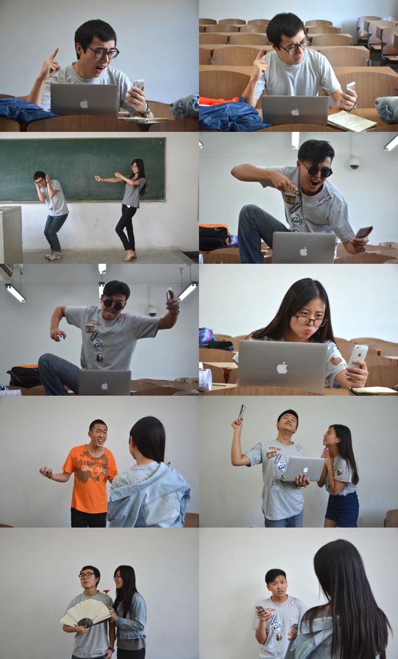 我们选择了一天下午进行拍摄,地点在一所大学的某个教室,背景使用白色墙壁,由于之前的样稿和创意准备,拍摄有的放矢,素材经过简单的准备,该有的都有了,所以过程非常顺利。在这里静电着重跟大家强调与“演员”的沟通。前期工作一定要准备到位,同时将自己的创意和18luck新利全站 背景详细的表达给我们的演员,他们说不定会给你意想不到的惊喜。 最终经过一个下午的拍摄,我们得到了如下照片。其中很多照片属于模特自由发挥,表情及动作都超出预期,静电不得不佩服,专业的毕竟是专业的,不一样啊。