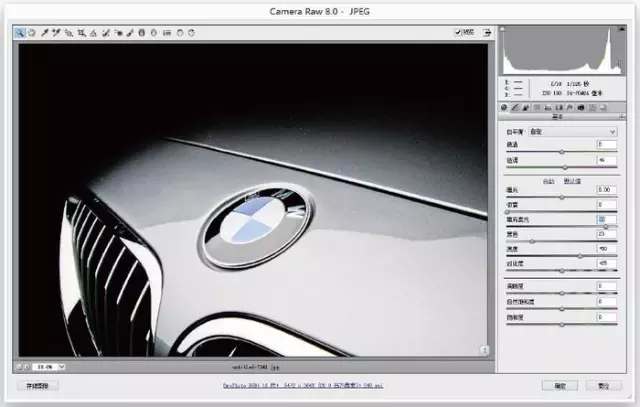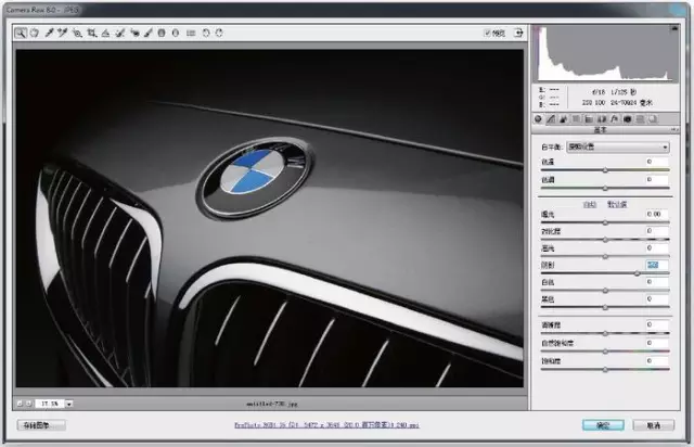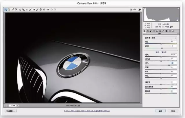 现在,双击原始智能对象的图层缩略图,它会在Camera Raw 中打开(如图3所示)。当打开时,你会看到其与Lightroom 开发模块相同的滑块、相同的顺序。事实上的唯一的区别在于,在Lightroom 中,背景色为暗灰色;在Camera Raw中,为浅灰色。现在,整个图像是在阴影区域的黑暗中,所以通过向右拖动阴影滑杆到+50,让图更亮一些。单击确定按钮以保存更改。