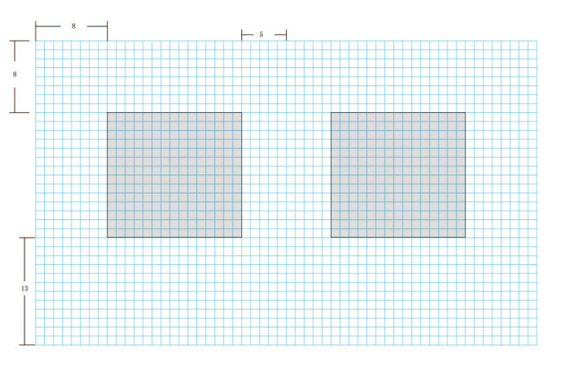 将斐波那契数列应用于页面的分割,图示由34x56个单元格组成,内边缘留白5个单元格,外边缘留白8个单元格,底部边缘留白13个单元格。以这种方式来确定图文的比例关系,能够获得和谐连贯的视觉效果。