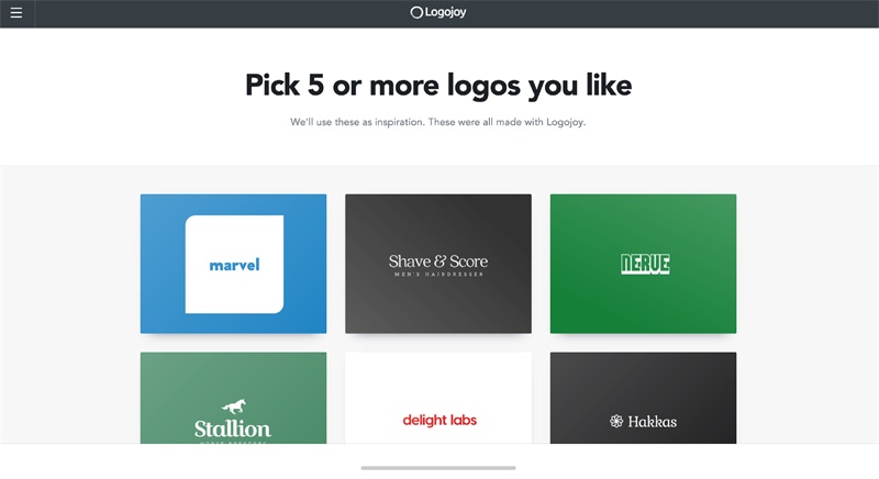 为了确保你的logo18luck新利全站 出来不是单调的形式,logojoy会让你选取5个你觉得不错的logo图形作为参考。这个将会作为后面对你logo的一个18luck新利全站 依据。