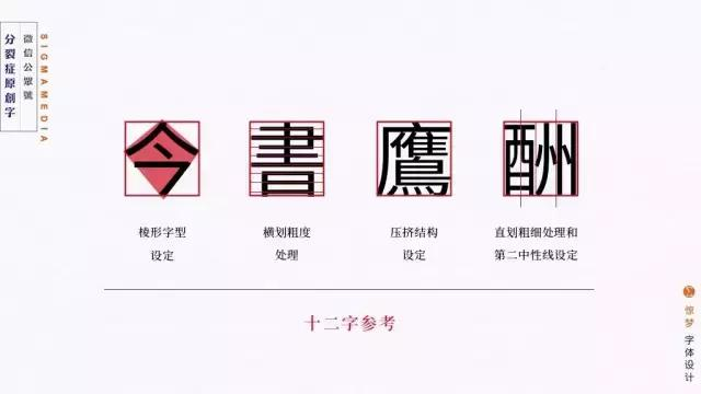 然后根据自己的初衷和立意,反复推敲和思考什么样的字体风格和自己的这一理念相符,确定好字库字体的笔体、结构和造型,也就说根据立意确定好基本字体风格。