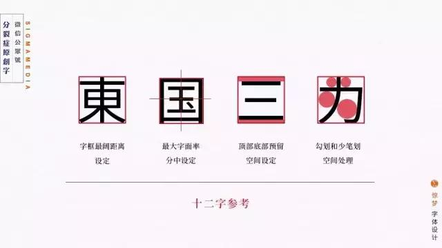 字体重心和中宫处理对字体性格起着决定性作用,所以,需要根据自己的立意恰当处理字体的重心是高还是低,中宫是紧缩还是外放,让字达到协调美观。