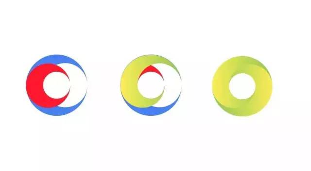 于是尝试用两个小圆切出红色形状,两个大圆切出蓝色形状,得到绿色单体,通过复制翻转得到最后图形。