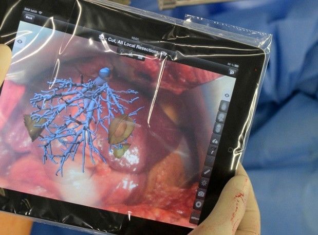 △ 外科医生在iPad上使用的一款AR应用