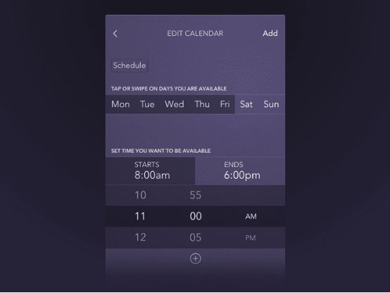 色块实际上是很好的分区工具,它能创建出有序的、重点明确的视觉层级效果。这款日历应用程序使用了几种不同的紫色色块来区分不同的信息。此外,这些色块还具有互动功能,随着用户的点击会产生相应的变化。