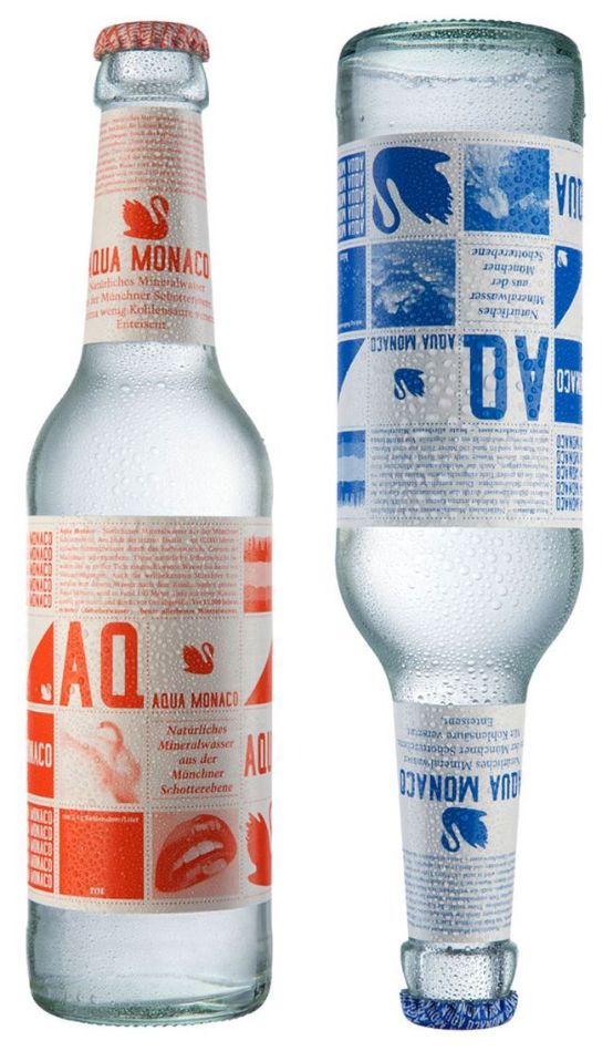 下图的两款矿泉水商标的色彩对比十分显著,因为所选颜色(蓝色和橙色)为色环上的互补色。传统色彩理论认为互补色是艺术18luck新利全站 中对比最强烈的色彩搭配。