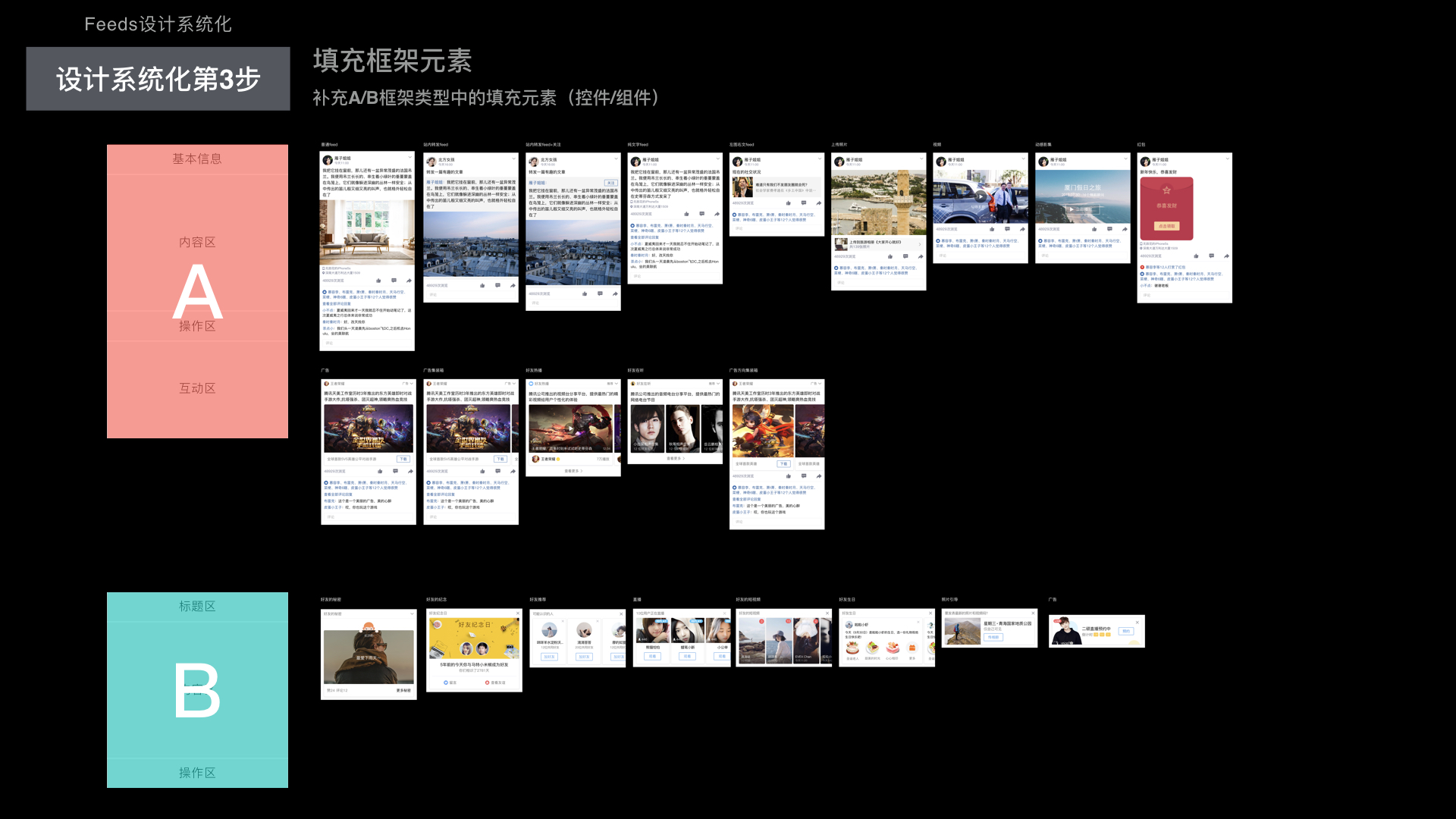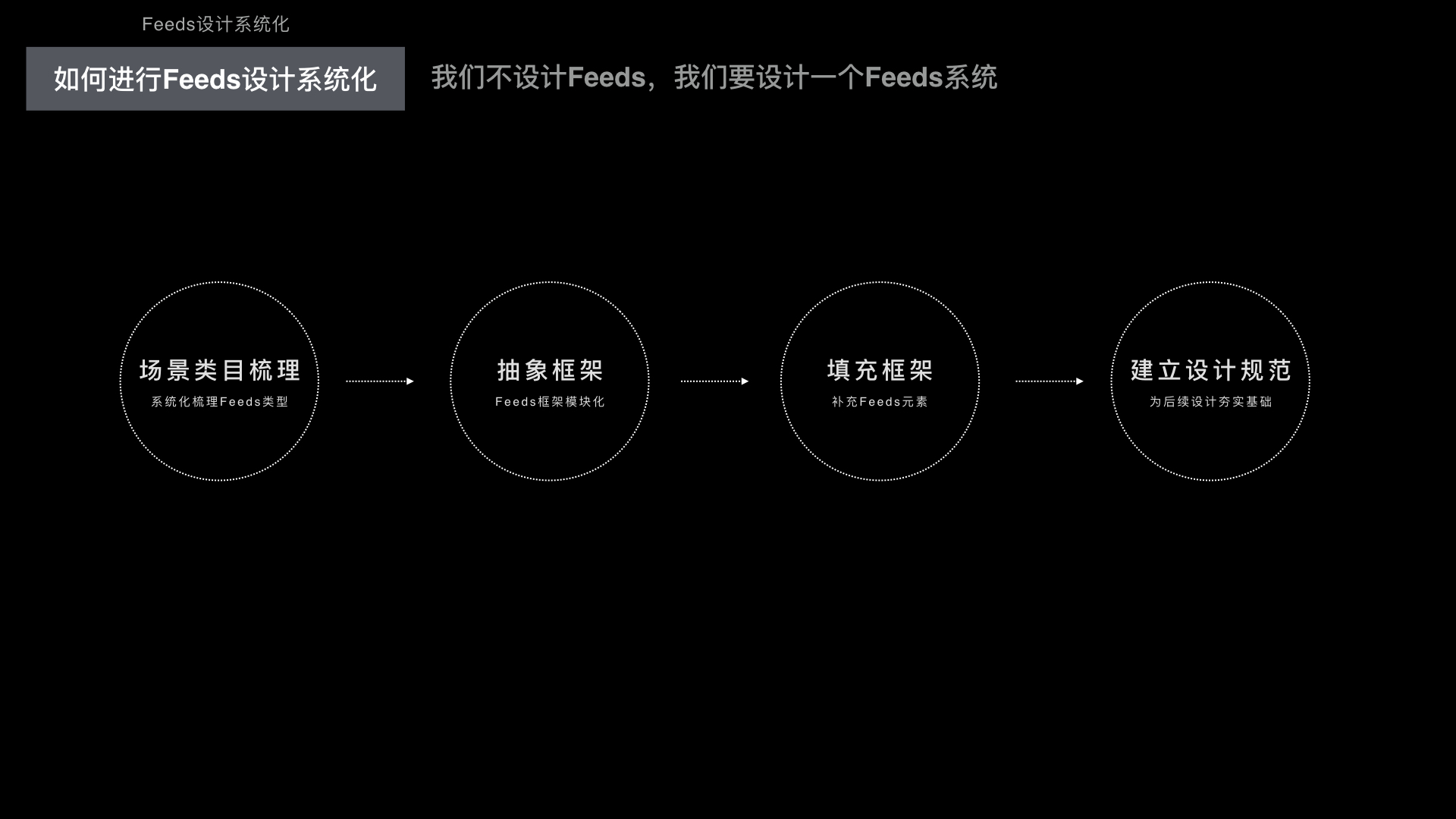 明确了目标之后,需要定义如何进行Feeds18luck新利全站 系统化的思路,主要有以下4个阶段:场景类目梳理- 抽象框架- 填充细节内容 – 建立18luck新利全站 规范。