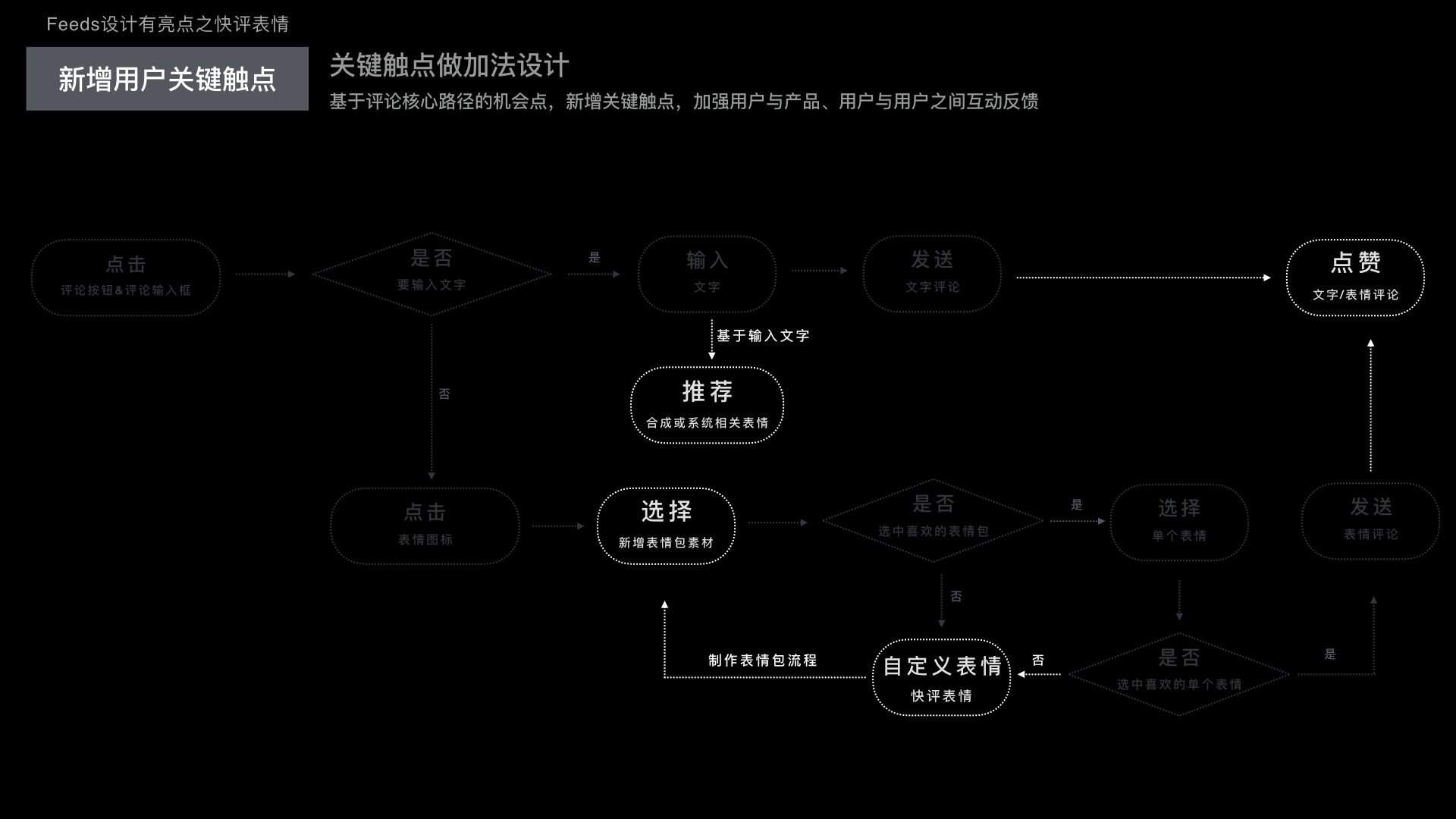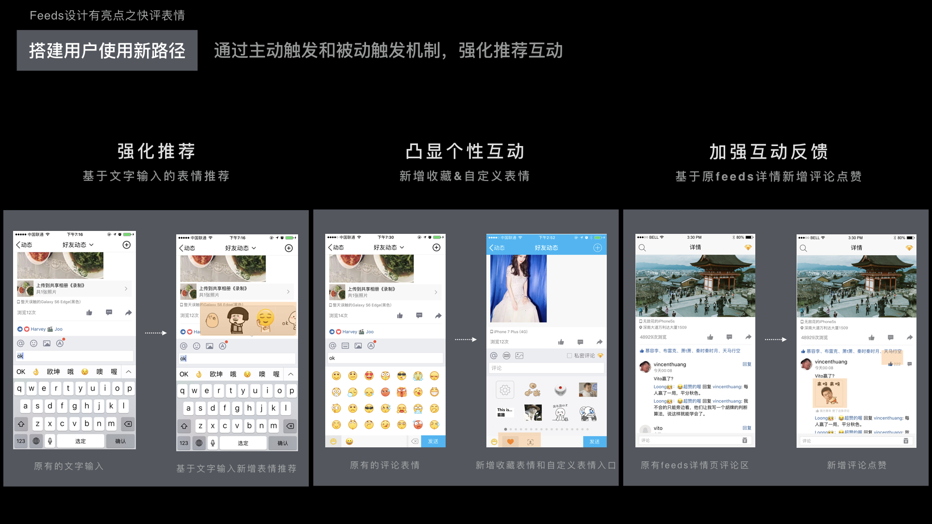 亮点18luck新利全站 第4步:定义具体的解决策略,分析了目标用户特性和动机后,可以尝试定义“如何做”的产品18luck新利全站 策略,搭建/聚焦用户使用核心路径,在核心路径上明确用户关键触点,并基于核心路径形成关键页面,并最后给出用户超越预期的产品体验。如快评表情18luck新利全站 中,由于是原有的评论表情优化,因此在定义解决策略时,首先聚焦评论表情的核心路径,基于核心路径寻求机会点,并且根据机会点搭建全新的快评表情使用路径。