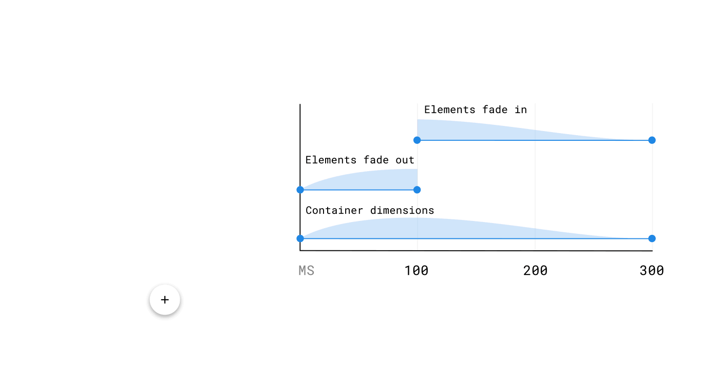 相比之下,像开关这样的小控件使用的时间就会很短,只需要100ms。如果一个过渡动画你感觉太快或者太慢,建议以25ms的增量来调整它的持续时间,直到最终达到一个比较舒服的状态。