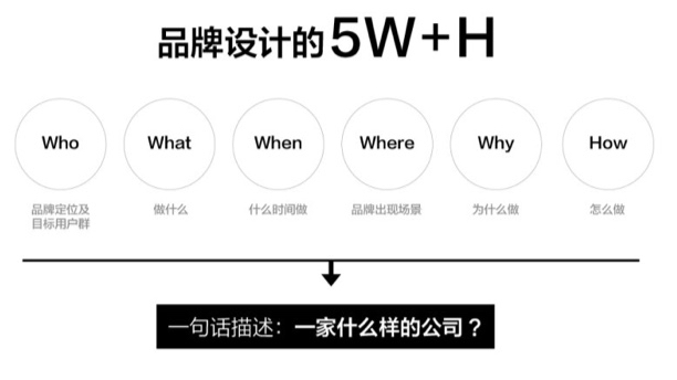 ▲“5W+H”分析法帮助你明确目标用户群是谁、18luck新利全站 使用场景在哪里、并指导你去做什么、什么时间、为什么做、怎么做等一系列活动。而最核心要回归准确找到公司品牌定位,换句话说就是精简到一句话“这是一家什么样的公司”或“一款什么样的产品”。