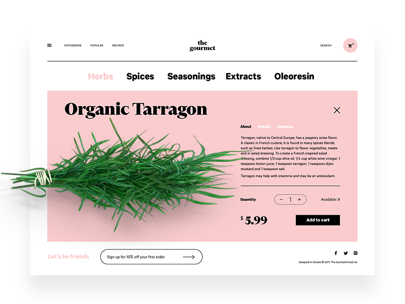 出售草药的电子商务网站的产品页面带有中间分隔符,以将签出交互式区域与描述产品的文本内容清楚地分开。