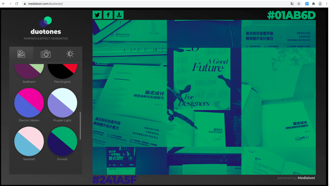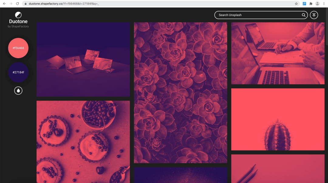 这两个网站都可以上传图片,也可以选择网站给的图片,再选择配色方案。如果要在限定的时间内快速产出双色调风格的图片,那么这两个网站最适合不过了。而且不需要梯子,亲测有效。