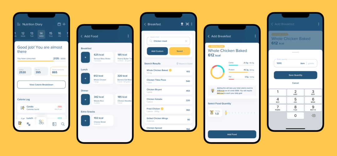 探讨了一个直观的用户在日记中加餐的流程,让锻炼后大多疲惫的用户有了一个简单的日记方式。