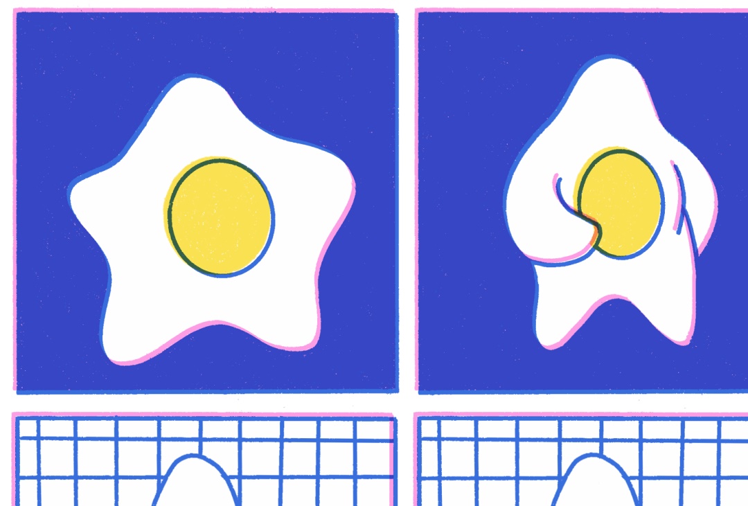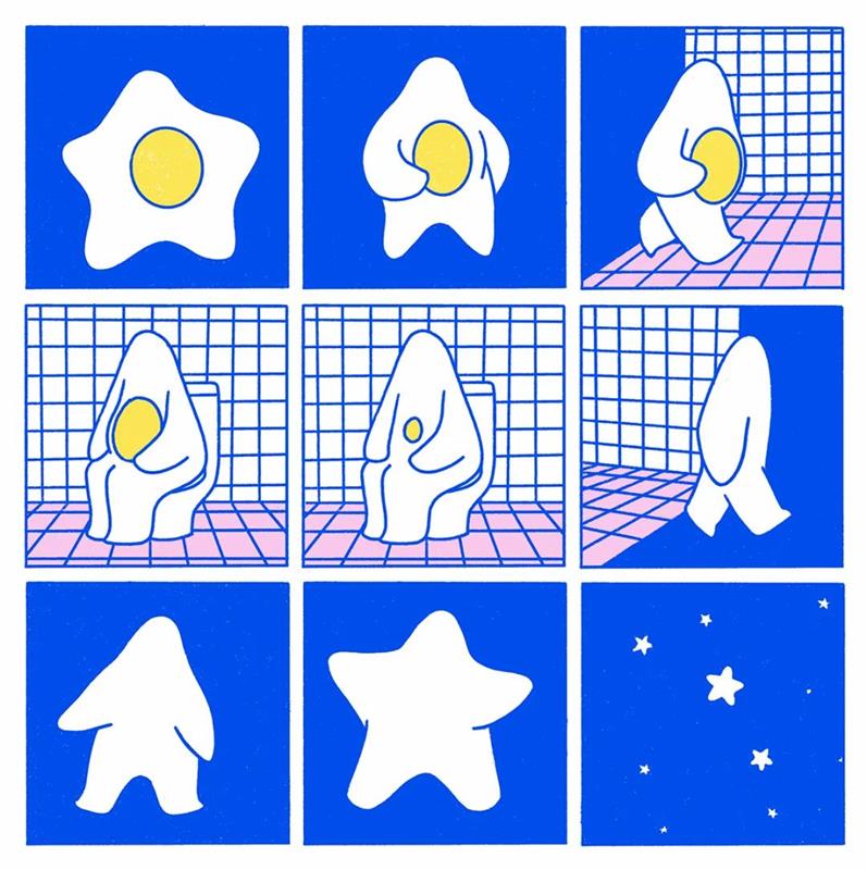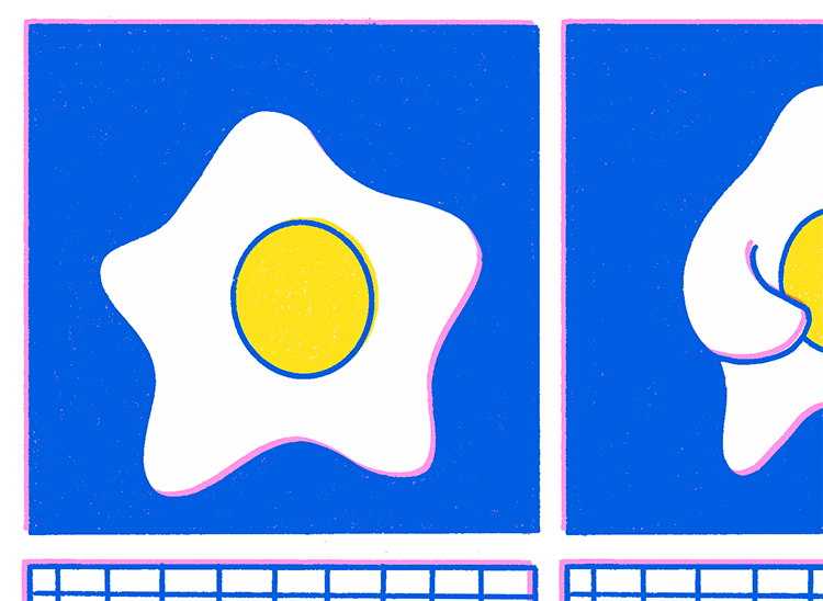 △ 这种小故事插图经常以简单的形状为主,主要是突出故事和趣味感。这就导致插图虽然是完成的状态,但是在质感和细节上可以再往上一层。所以接下来为它添加riso印刷的特点,看看会有什么样的效果。