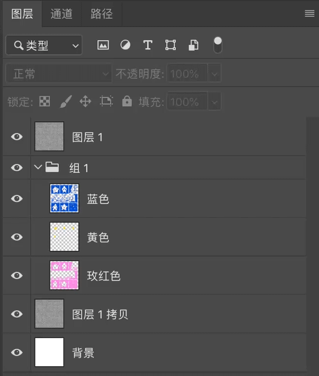 △ 所有的颜色图层都点击填充锁定,选定一个图层填充白色。