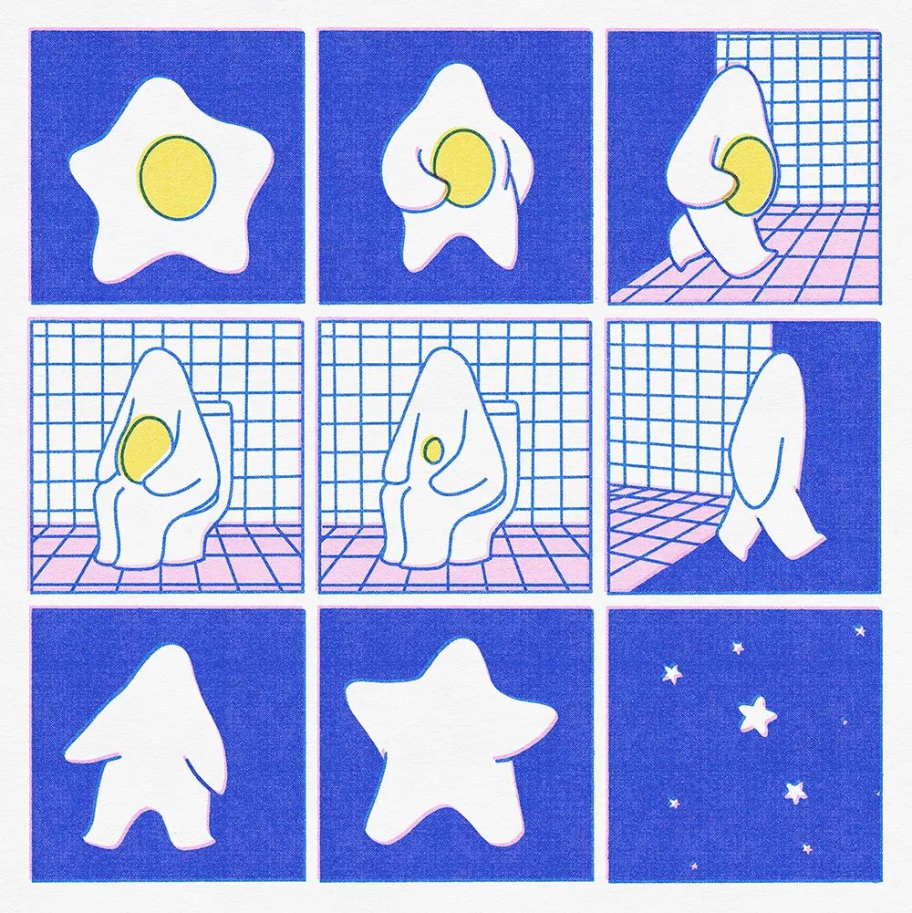 以上我只是在模拟riso印刷的特点,想要让颜色叠加更有层次感,可以在构思和配色上多尝试。当然,也不必要模仿得完全相像,能从这种风格里得到一些灵感就已经很值了。我们可以看一下其他插画师是怎么做的。