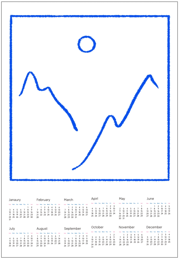 最后在月份的开端与周围添加表明月份数字。文字部分就完成了,接下来就要考虑背景了。它更适合添加一个细节强、更偏向纹理性质的图形。也因为日历的主题是《起起落落起起起……》,比较正能量的主题。