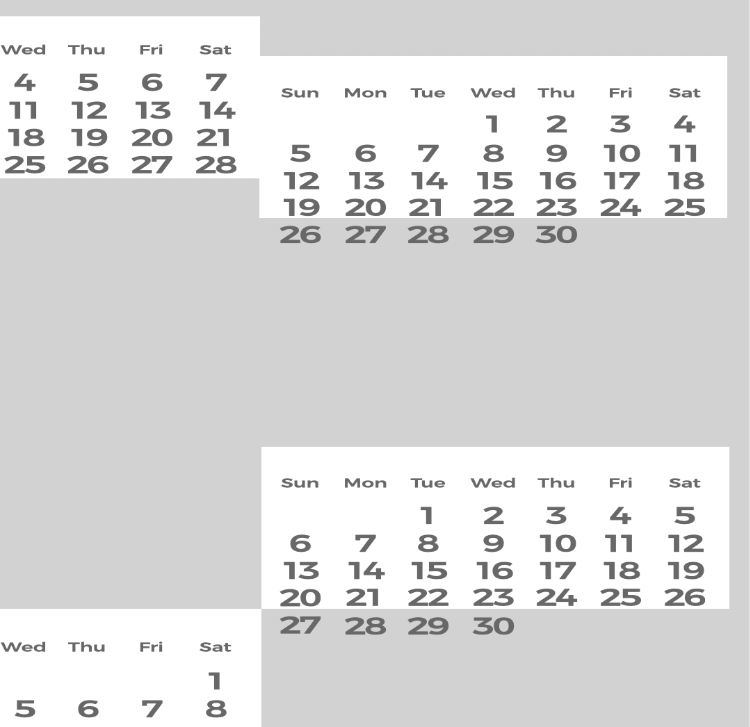 但是没有色块后的纯文字有点乱,图形感也少了很多,所以色块是要保留的。但是我们以另一种方式保留色块。就是填充背景色,在月份的位置镂空。