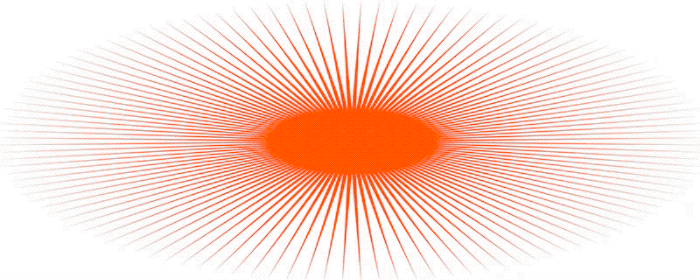 太阳这个意象就很适合,选择了一个放射图形,在它的的基础加上横向条纹的切割,就能让图形变成一种炫光感的图形。