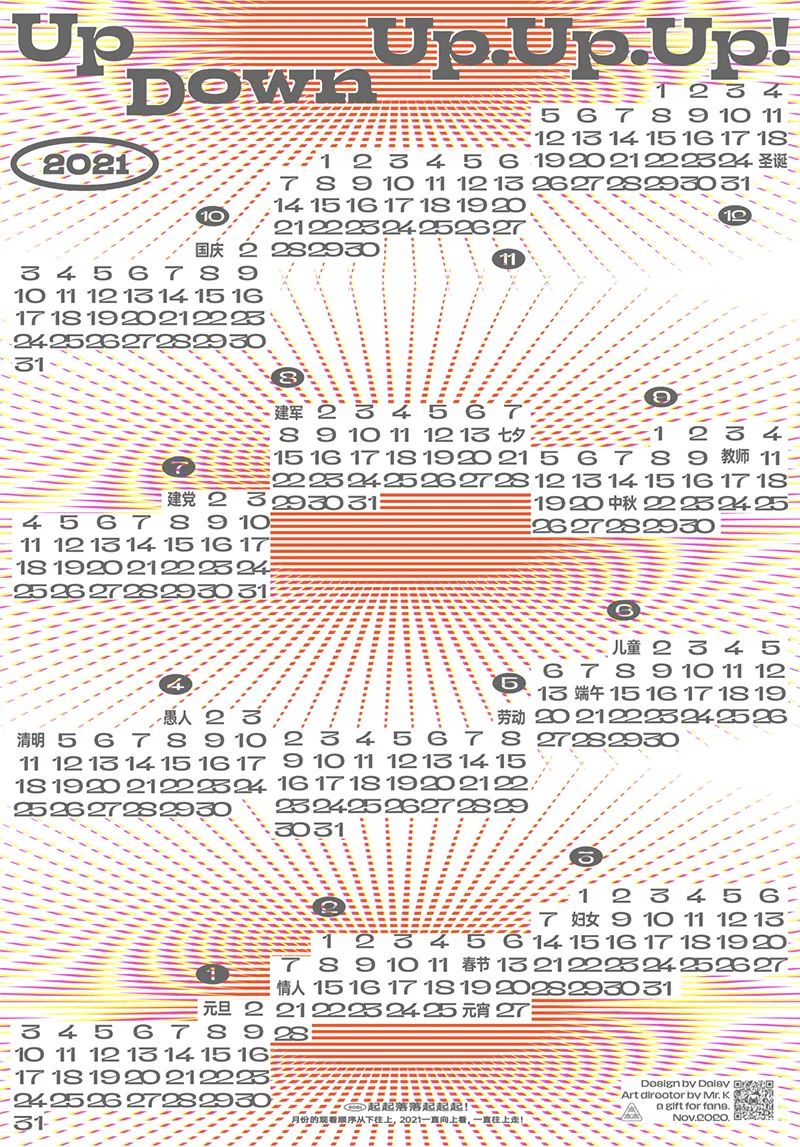 因为文字的宽度不同,导致竖向看起来数字的排列有点乱,所以在数字20之后的字间距都要调近。在重点的节日可以替换成中文,增强实用性。