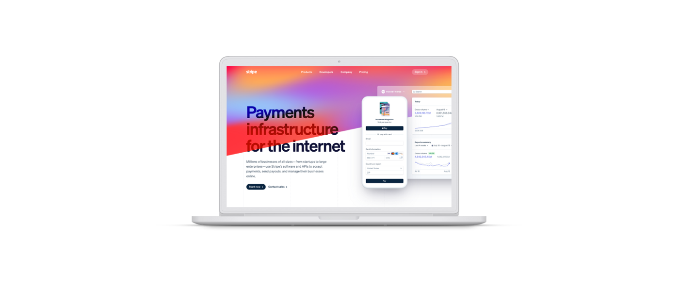 玻璃拟物化在主流的操作系统上都有不同程度的运用,并且被润物细无声地融入不同的UI组件上。比如上面这个 Stripe 的网站,就采用了这种风格。但是要让 UI 中其他的元素足够的易读和识别,还需要技巧。