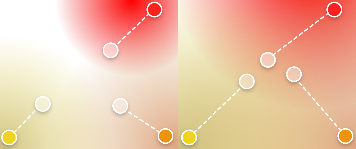 将多个渐变填充混合到一起,并且都是从中心向边缘的方向,并且降低不透明度。只需要多尝试拖动手柄即可寻找最佳的组合方式,这种方式可以和第一种方案结合起来使用。