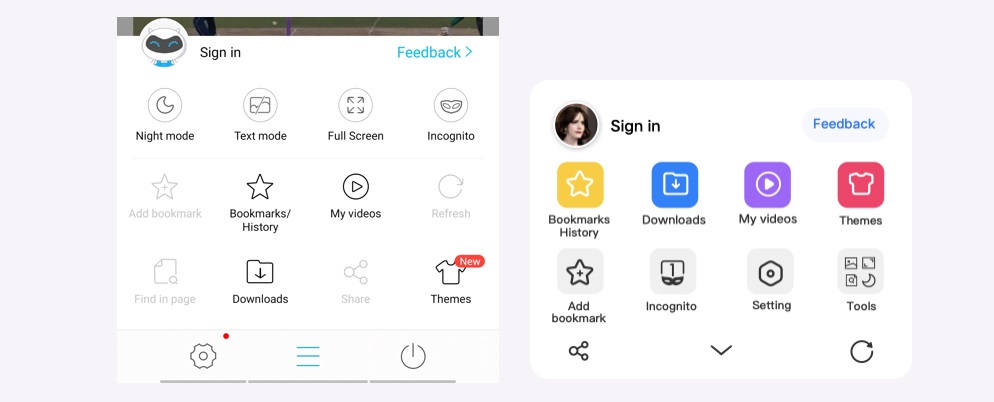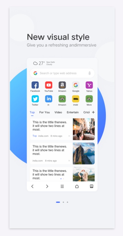 19年初,外销浏览器做了一次视觉焕新大改版,从交互结构到视觉界面变化都比较大,所以我们就增加了新版本的滑屏引导,告诉用户有哪些界面及功能的变化。