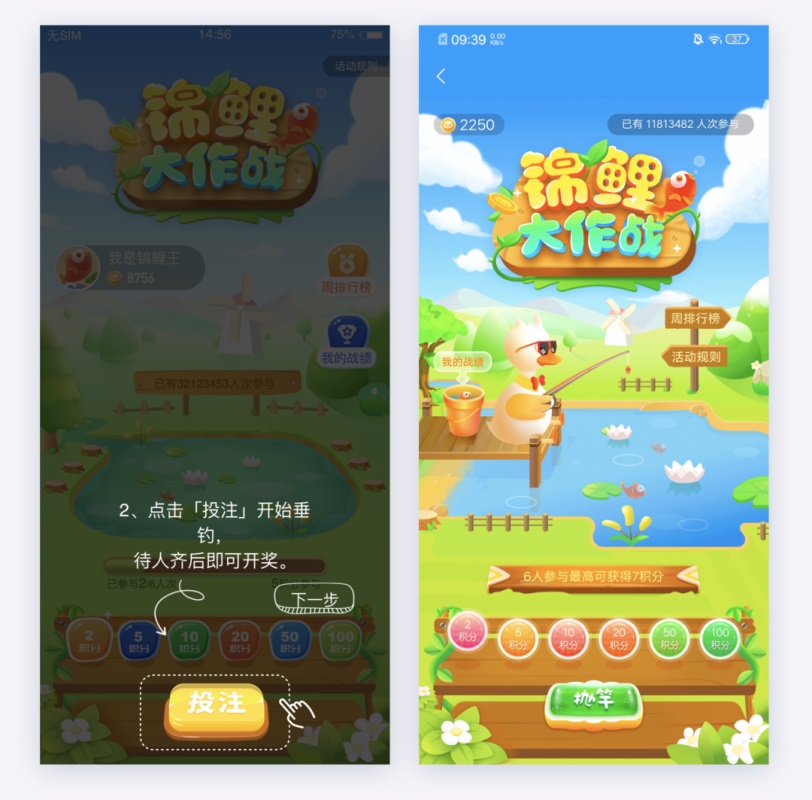 19年底,我们做的另一个运营活动也经历了类似的教训。当时锦鲤很火,我们就做了一个锦鲤大作战的小活动,画面精致,奖励也比较诱人。