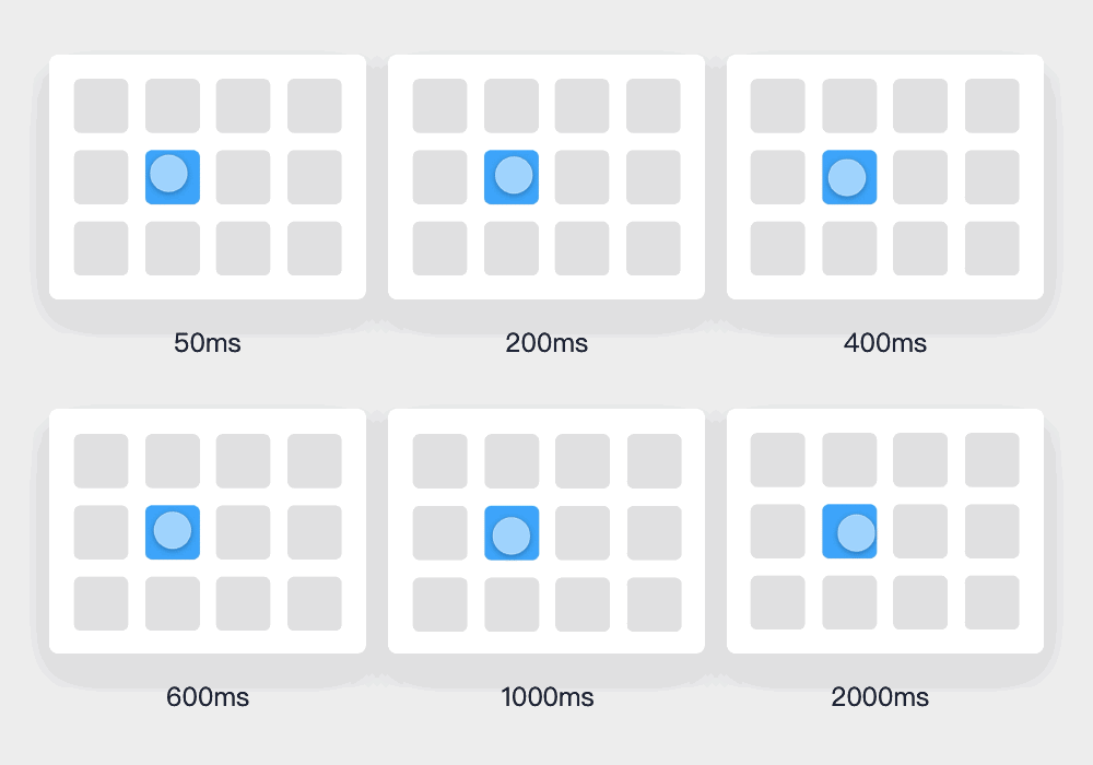 从这组图片可以感受到,当图片在400ms内时,是勉强可以接受的,但当时间延长到600ms及以上时,人们就会感受到明显的延迟、等待和卡顿感。