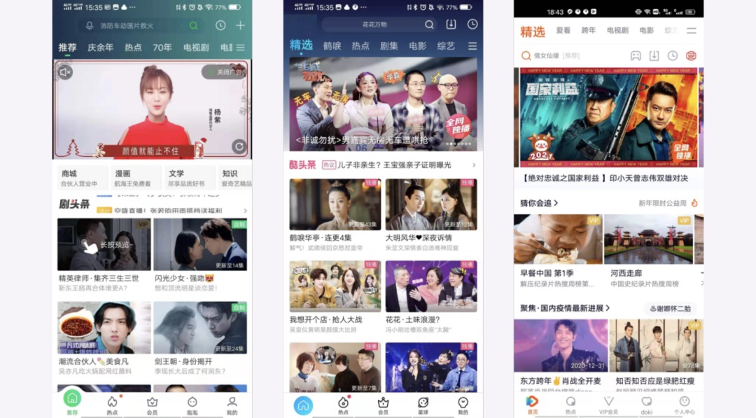 以视频App为例,行业内的头部产品在产品框架及元素布局上都具有高度的一致性,这也是雅各布定律的一个体现。