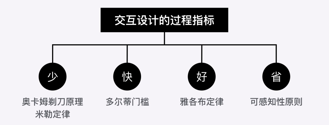而在交互18luck新利全站 的过程中,以交互18luck新利全站 定律为指导的过程指标是通用的,几乎可以说放之四海而皆准,我把这四个过程指标概括为四字箴言:少快好省,怎么理解呢?
